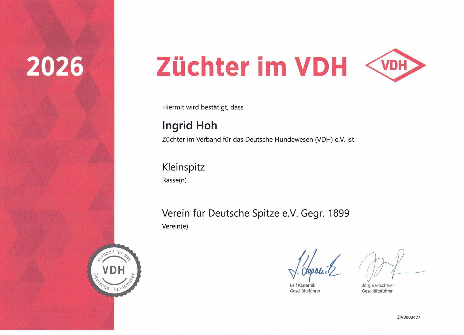 Unsere Welpen erhalten VDH/VfDSp. Ahnentafeln und gelten als anerkannter FCI Rassehund, somit können sie problemlos ins Ausländische Zuchtbuch der FCI übernommen werden.